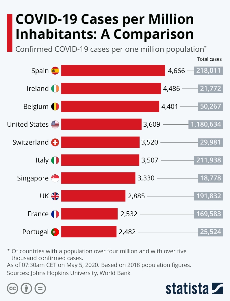 COVID-19 Cases per Million Inhabitants: A Comparison: Statista.Com: CC 3.0