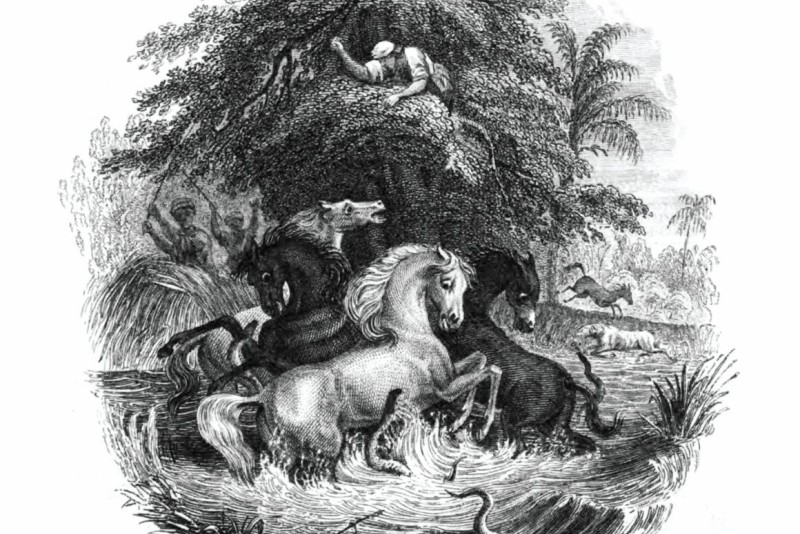 Meanwhile, on the far side of the planet, Alexander von Humboldt was exploring the Amazon when he chanced upon local fisherman. Those brave men were herding some wild horses into the water when chaos broke out.