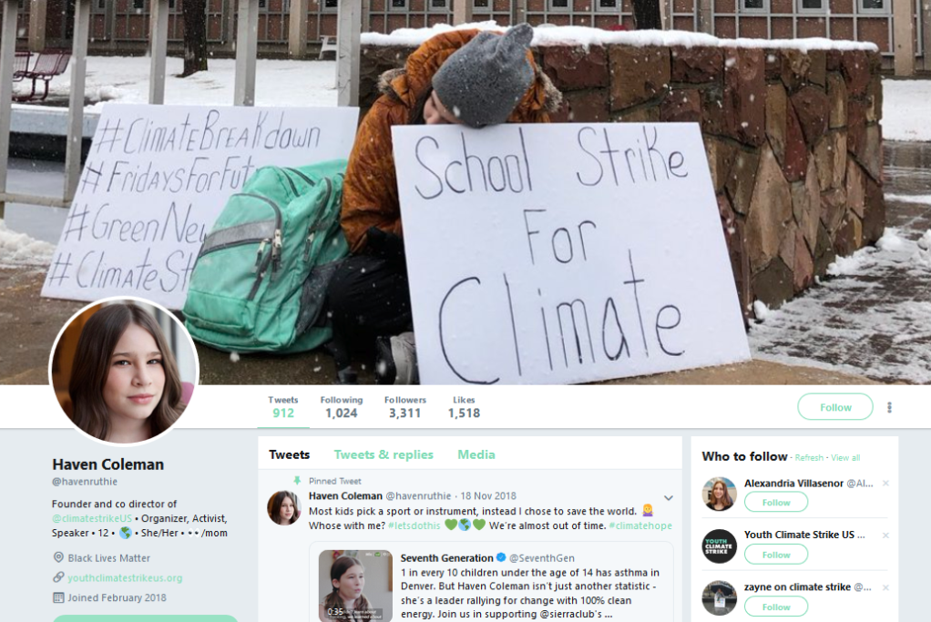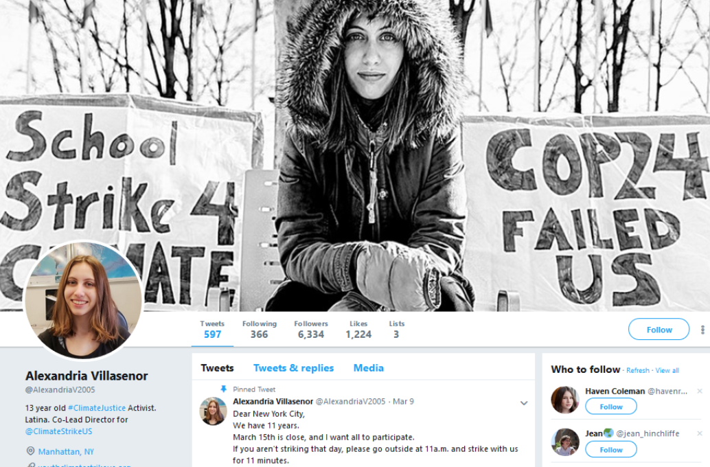 Alexandria was raised in California. The family moved to New York after the Paradise fire 100 miles away triggered a massive asthma attack. “I couldn’t leave my house at all,” she told Oliver Milman. “Just walking to the car would make my eyes sting. We rolled up towels and put them under the windows.” This experience turned Alexandria Villasenor into an activist overnight.