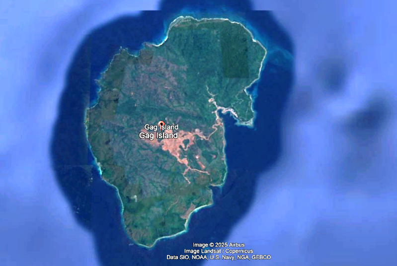 Extent of Nickel Mining on 6,500 hectare / 16,000 acre Gag Island (Image Google Earth)