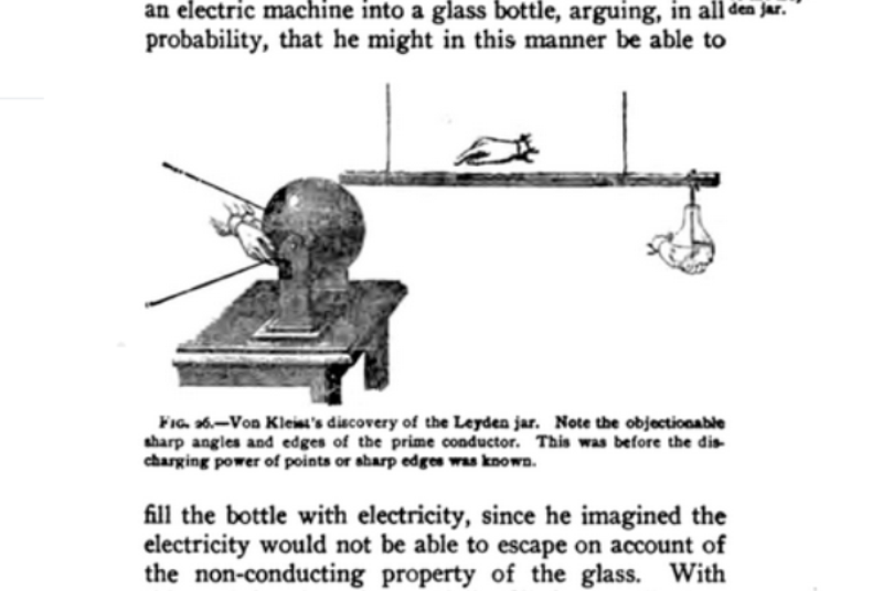 Ewald Georg von Kleist was experimenting with static electricity in 1845. He wondered if he could store the energy by putting it in a bottle half full of water, that he lined with metallic foil inside and out. He imagined the electricity would not escape, because the leyden jar glass was not a conductor.
