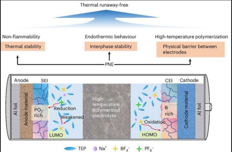 The press release from Chinese Academy of Sciences we link to below, speaks of a ‘self-protecting, non-flammable electrolyte that physically blocks thermal runaway in sodium-ion batteries’.