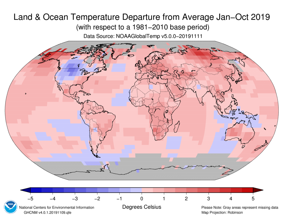 Land and Ocean Temperature Departures 2019: NOAA