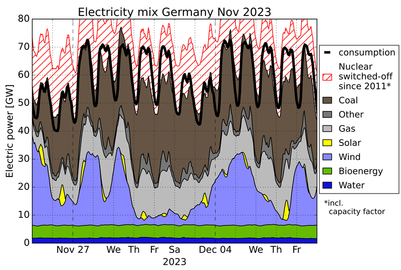 The Germans have a weather pattern that they call ‘dunkelflaute’, meaning literally dark doldrums or dark wind lull. During these periods very dense cloud cover forms overhead. There is no sunlight, and no wind to harvest for renewable energy at these times.
