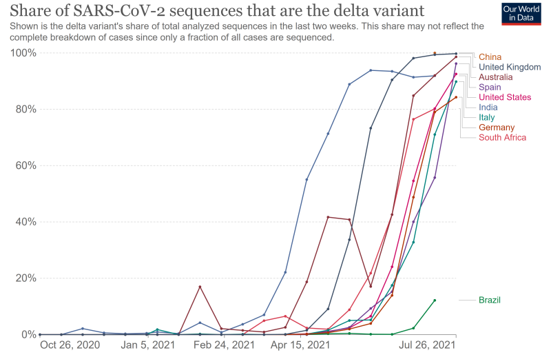 However, the caseload from the Delta strain had risen to 328 by today, August 3, 2021. But China is not the only country experiencing it. Australia is under severe lock down restrictions too. United States cases rose 150% in the past two weeks. The UK is passing through a surge.
