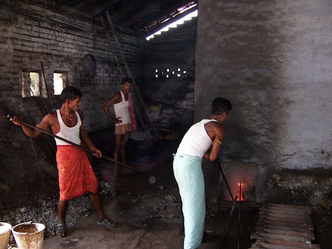 Sweat shop laborers discharge electrolyte from the dirty green e-rickshaw batteries into gutters before reducing the cases and separators to plastic pellets. The Times of India has seen women covered in lead dust extracting lead ingots from their molds. Their lead exposure is eight times greater than people in surrounding areas.