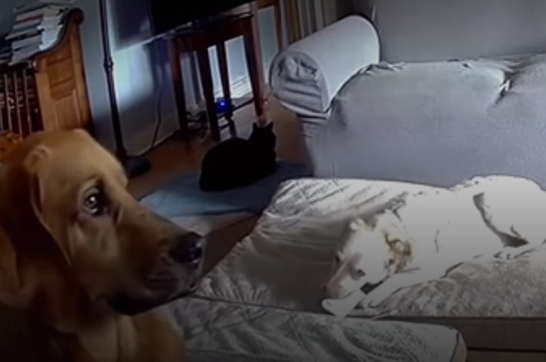 Picture the scene of domestic bliss, as a family leaves their two dogs and a cat in their home while they are  out. Their pets have their cushions in the lounge, and we imagine an ample supply of food and water to last the day.