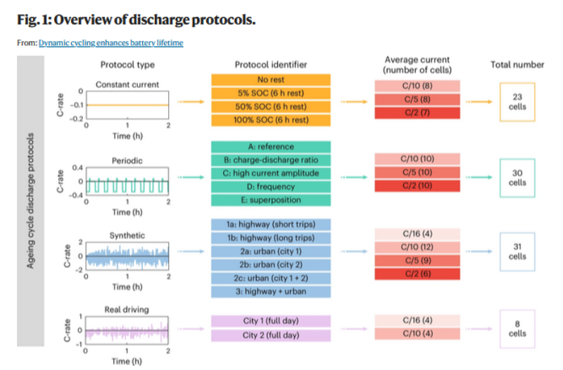 However, the Stanford team also found reports using data from dynamic discharging regimes. Surprisingly, they found that varying the discharge rate by alternating driving styles “led to an increase of up to 38% in equivalent full cycles at end of life”.