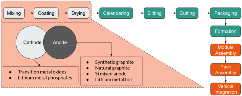There are three broad stages to manufacturing electric vehicle batteries. First,  suppliers prepare the raw materials. Then these materials go to sub-component manufacturers who prepare individual cells. And finally, battery makers integrate these cells into the large electrical vehicle batteries we have come to know well.