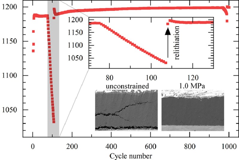 External pressure on lithium-ion batteries is not a dry academic topic. Scientists at Fraunhofer Institute for Silicate Research in Würzburg, Germany, investigated the impact on pouch-type cells. They compared the benefits of allowing space for electrodes to swell during cycling, and concluded this promoted better battery performance.