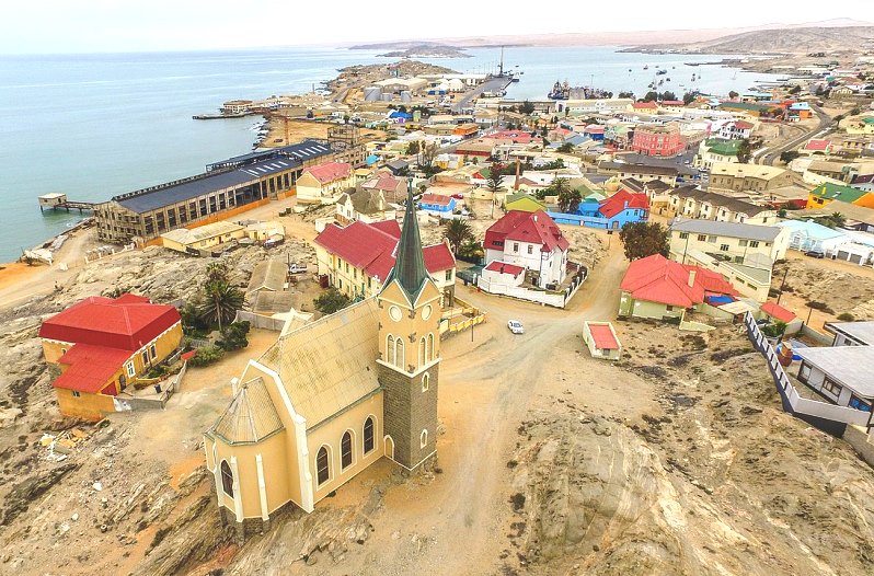 An aerial view of Lüderitz on the Namibian Coast (Image Sky Pixels BY CC 4.0)