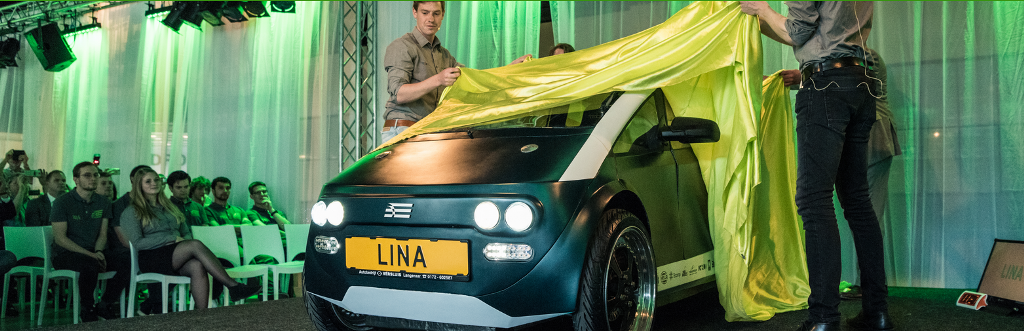 The ‘what’ is a fully biodegradable electric car the students call LINA. She’s a head turning lady the students have cobbled together from sugar beet, and flax. We traditionally use sugar beet for making sugar, while flax, some say, could be the first cultivated super food. For motive power, Lina uses three 48V 1,9kWh lithium-ion battery packs.