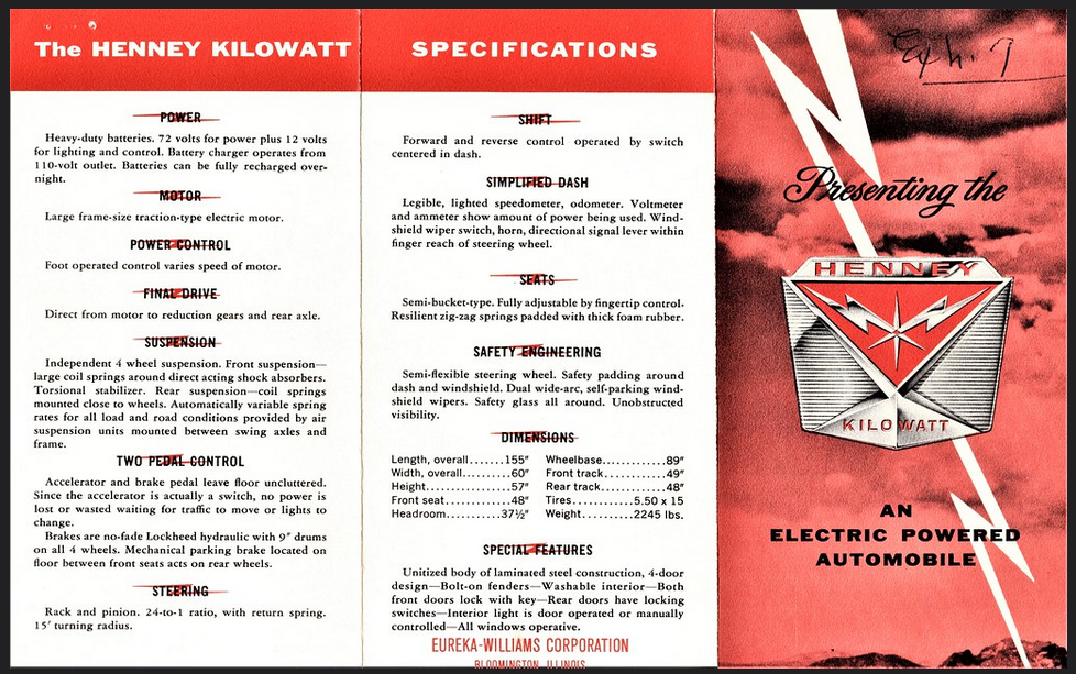 The Henney Kilowatt electric car came so close to becoming the first mass production version in 1959, it was tantalizing. However, as it turned out the consumer interest simply was not there. You see, only a few scientists had stumbled over looming global warming. And as for politicians, green energy was hardly a great political slogan when everything seemed to be going so well with gasoline so plentiful.