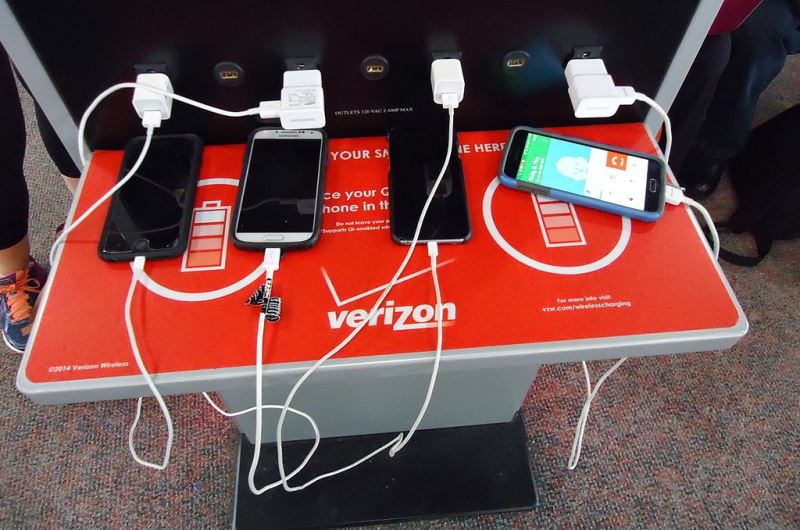 When we use a phone battery – any battery – negative charges flow across to the positive terminal. When we recharge it again this process reverses, as positive charges prepare the battery for more work.
