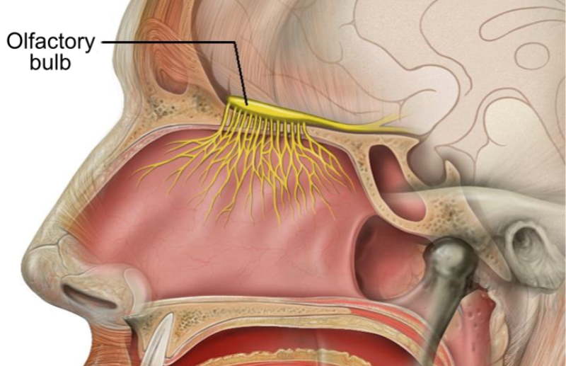 This is a neural structure in the thinking fore-brain. It sends smell data for further processing to the amygdala, the orbito-frontal cortex, and the hippocampus that plays a role in emotion, memory, and learning.