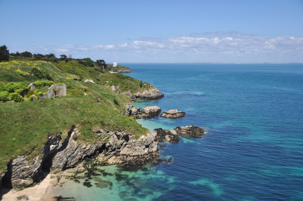 Belle-Île-en-Mer is a French island eight miles off the northwest coast of France. Jagged cliffs bear witness to mighty waves, while the lee side has placid, sandy beaches. During summer the population swells from 5,000 to 25,000 people. The ferry owners have not discovered the magic of batteries yet, so the boats arrive belching throbbing diesel fumes.