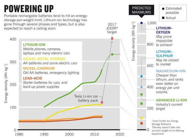 One approach to improving the current li-ion battery technology is a Nano-based electrochemical synthesis promoted by the Argonne National Library. Sanja Tepavcevic, member of the research team, has found a way to replace lithium in the li-ion technology with magnesium. The result is the Magnesium-ion (Mg-ion) battery.