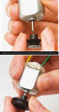 - Get one of your motors and attach 1 pulley to it. Make sure that you push as hard as you can in order to secure the position.