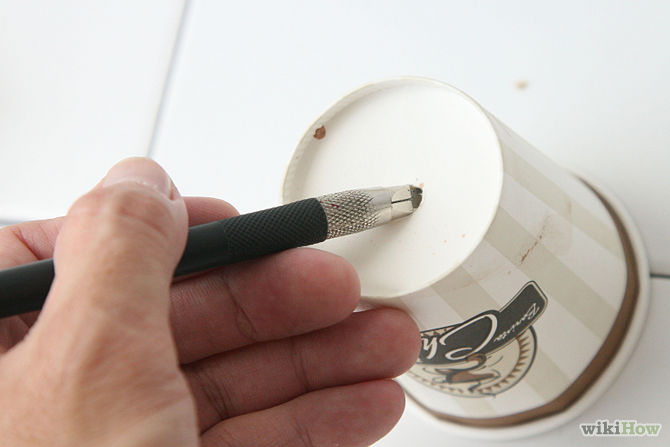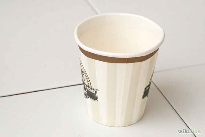 d) Make a hole in the paper cup; it will act as a reflector. Push the bulb through the hole and secure with the tape.