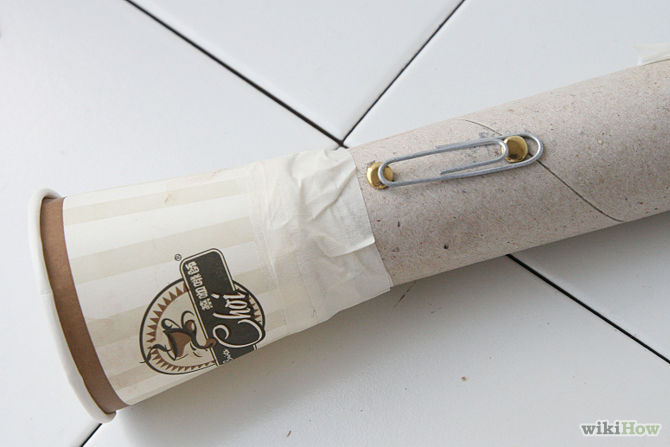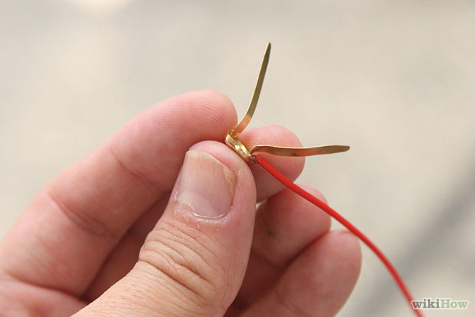 a) Push the metal fastener through the tube and affix it with a paperclip. Here the paper clip will act as the off/on button of your flashlight. Attach a copper wire to each fastener from inside the tube.