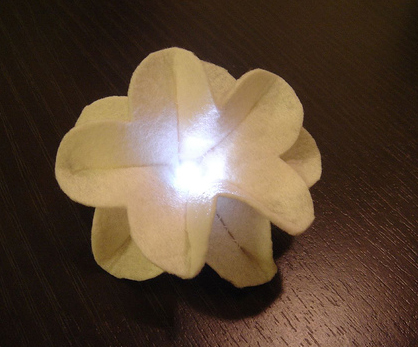 When you close the snaps, the light will turn on. You can add a pin to the back of the flower, so you can attach it to your clothes or bag. Or, you can even add a thick thread to the flower and make a necklace out of it.