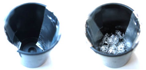 - Put the aluminum balls into the film can – enough so that they can serve as a bridge between the two foil strips.