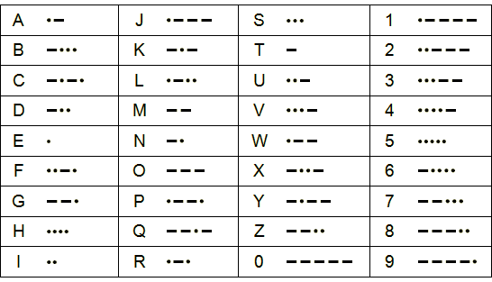 You can now start sending messages using the Morse code mentioned below. A dot (.) is a quick press-then-release (click-clack) and a dash (-) is a press-wait-release (click-pause-clack).