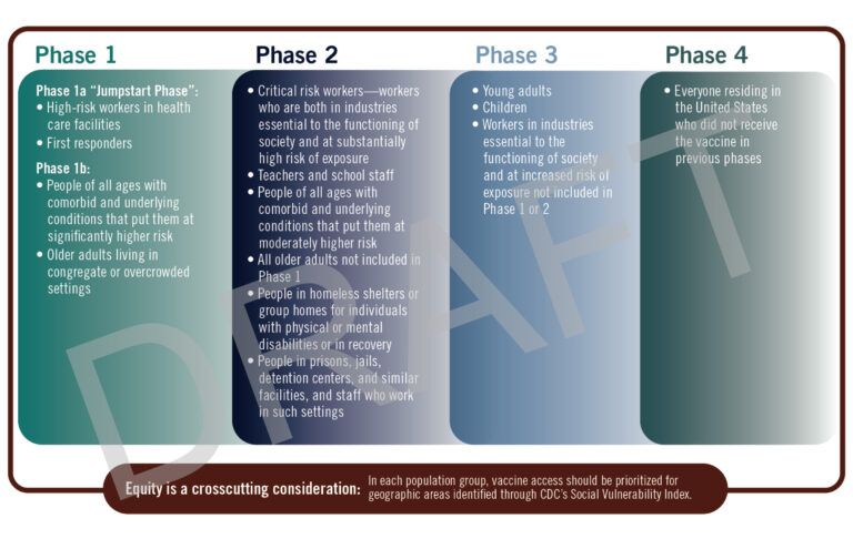 Phase 1 of the proposal first outlines people with the greatest likelihood of being in settings where the virus is circulating. And moreover are at risk of receiving a sufficient dose because they are:
