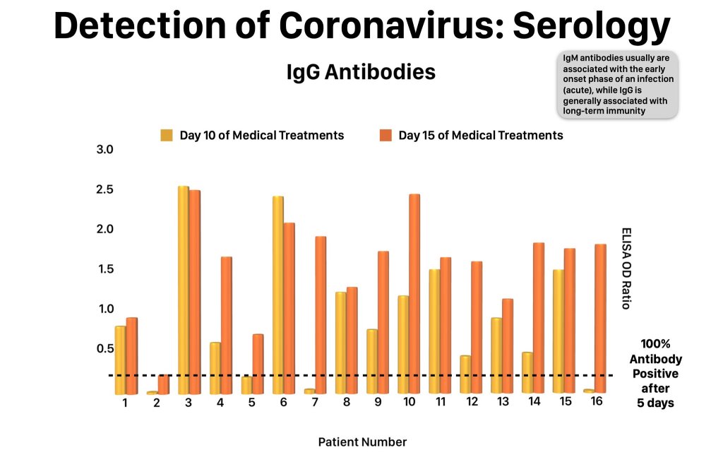 The rush to get to market has produced unreliable tests in the past. However, multinational F. Hoffmann-La Roche AG, founded 1896 enjoys high stature in the health industry with over 94,000 workers. Therefore, we are inclined to believe its claim of 100% accuracy where the person previously had the disease.