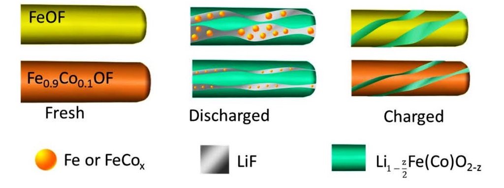 “By contrast, some compounds like ferric fluoride FeF3 are capable of transferring multiple electrons. This is through a more complex mechanism we call a conversion reaction.” The research team added cobalt and oxygen atoms to FeF3 nanorods using a process called chemical substitution. This overcame previous challenges of short recycling life.