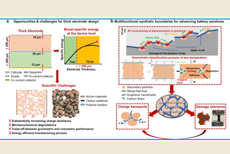 “By simply making the electrode thicker, we can increase the overall amount of active material, and boost the total energy of the battery.”  In summary then, this involves making the electrode material highly porous, so there is 40% more space for the charges to arrive and depart.