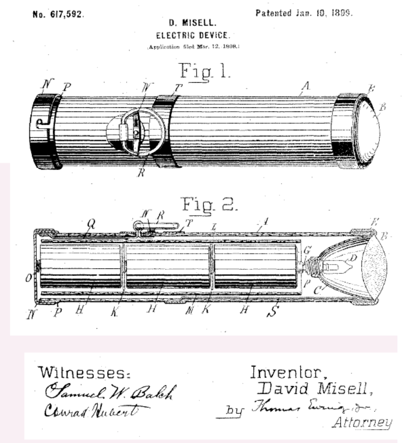 Conrad founded the American Electrical Novelty and Manufacturing Company three years before he purchased the patent. And so it was not long before he launched his pioneering days of battery flashlights based on David Misell’s idea.