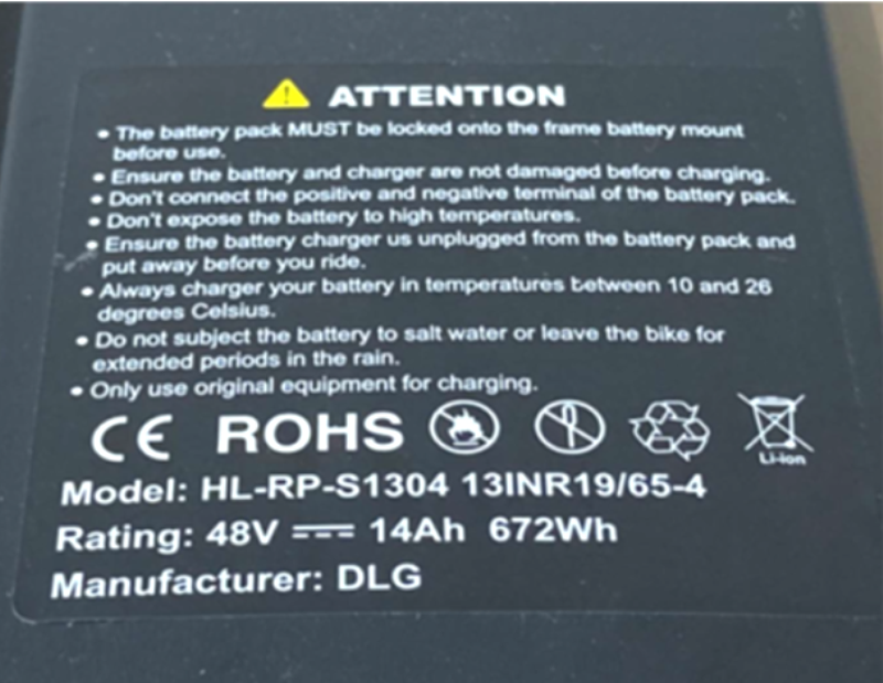 The batteries were also supplied separately. The lithium-ion batteries in question should display either ‘HL-RP-S1304’ or ‘RP-1304’ on a label. We caution consumers in British Columbia to treat these Rad batteries with utmost care at all times.