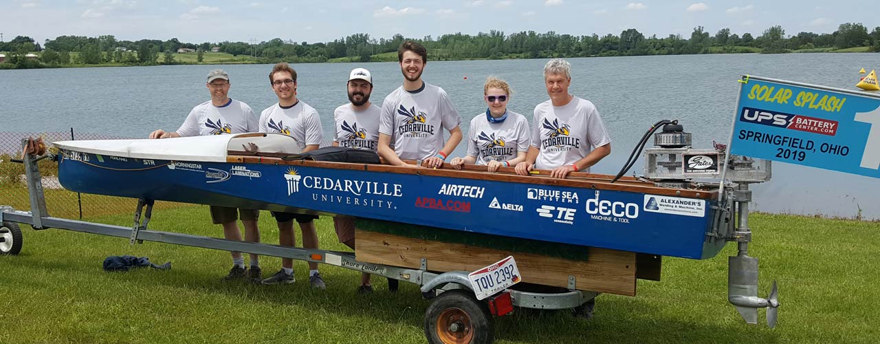 Not only did Cedarville become the 2019 Solar Splash winners, they also got 1st place in every event! These events include the qualifying, slalom, endurance, and sprint events. They got their win with the help of their senior professor of mechanical engineering, Dr. Tim Dewhurst and the associate prfoessor of electrical engineering, Dr. Gerry Brown.