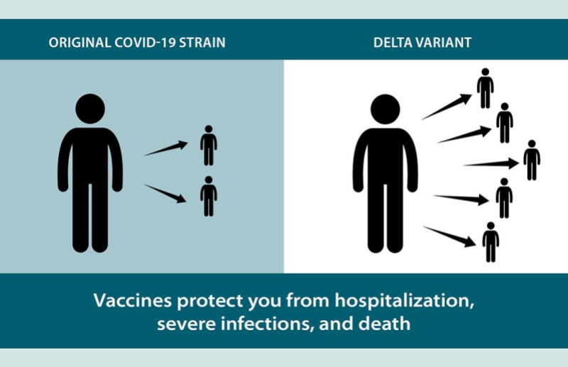 The Delta variant causes higher concentrations of virus in infected people, and remains infectious longer: