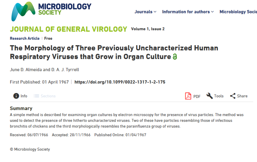 They sent the sample to June Almeida who compared it to influenza viruses but noticed distinct differences. She later identified it as the world’s first coronavirus in humans, because of the characteristic crown or halo shape.