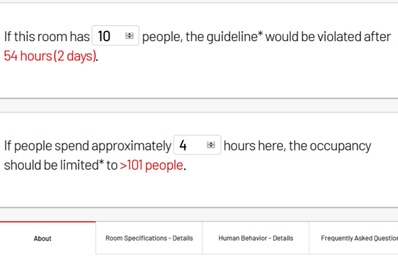 The predictive algorithm could be enough to make Google blush with all factors calculated and loaded. That’s why we were delighted to discover there’s a handy online risk-assessment calculator we link to below. Tell it about the room, the number of people, their age, and the activity and it assesses the risk.