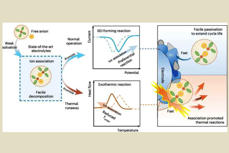 The team from China’s University of Hong Kong discovered an ion association in electrolytes that lowered the temperature inside lithium-ion batteries. This is a technical term for a chemical reaction, whereby ions of opposite electric charge come together in solution to form a distinct chemical entity.