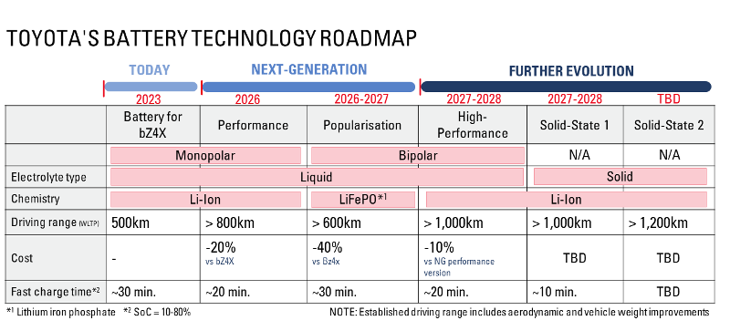 However, Toyota battery technology improvements will not be stopping there. The company plans to introduce a ‘Popular’ lithium-iron-phosphate version the following year, promising: