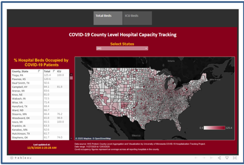 NPR has crunched new federal data revealing how many inpatient, and ICU beds are available on a weekly basis. It used the University of Minnesota Carlson School of Management analysis of this to create an interactive map. Follow the link below, then scroll down to track your county COVID status online.