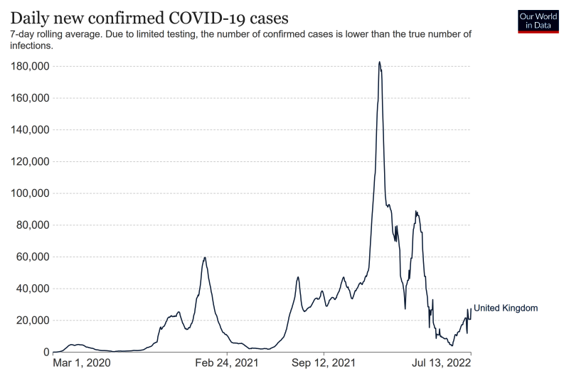 An alarming 1:25 people – 2.1 million – in England tested positive at end June 2022. Moreover, this number is not showing signs of subsiding. Vaccinated and previously-infected people are not immune, although their vaccinations do help protect against serious illness.